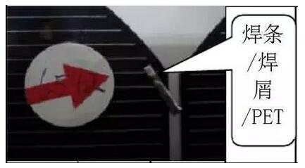 可能导致的原因有:排版人员不经意将残留焊条溅进,剪多余焊带时未一刀剪下,多次过剪所致。