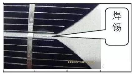 可能导致的原因有:单焊人员焊接速度过快,辅焊带手势不正确,焊带规格与电池片主栅线不匹配,焊虚导致。