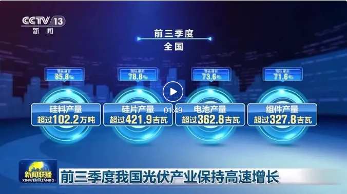 今年前三季度,我国光伏市场规模持续扩大,产业链主要环节产量延续增长态势,光伏产业持续保持高速增长。