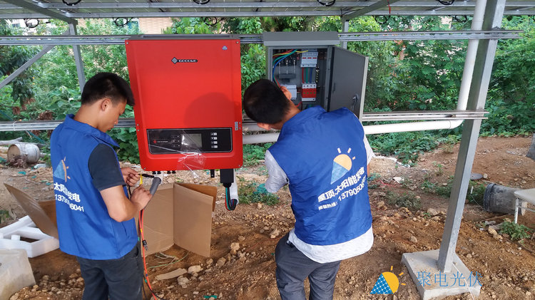 该套光伏发电系统安装在客户自有山林地上,从此客户可以优先使用自己太阳能电站发出的电,余电南方电网回收2017年3月10日,立即博光伏业务团队与樟木头蔡先生签订了16.8千瓦家庭光伏发电项目。该套家庭光伏发电系统累计30年发电量588672度,年均发电量19622度,完全可以满足家庭用电的需要。另外,太阳能光伏电站发出的每一度电都有补贴(国家补0.42元/度,连续补贴20年+东莞补0.3元/度,连续补贴5年),而且每月还有部分余电卖给南方电网,卖电装钱,自用省钱,投资收益非常高! 图:1:电路安装调试