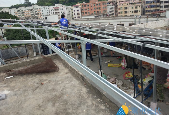 2017年3月20日,立即博光伏业务团队与樟木头陈先生签订了19.32千瓦的家庭光伏发电项目。 该套家庭光伏发电系统累计30年发电量744670度,年均发电量24822度,完全可以满足家庭用电的需要,另外,屋顶太阳能光伏电站发出的每一度电都有补贴(国家补0.42元/度,连补20年+东莞补0.3元/度,连补5年),而且每月还有部分余电卖给南方电网,卖电赚钱,自用省钱,投资收益非常高! 图1:支架